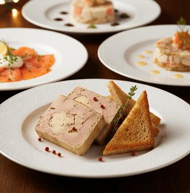 Foie gras maison, saumon et créations délicates prêtes à servir